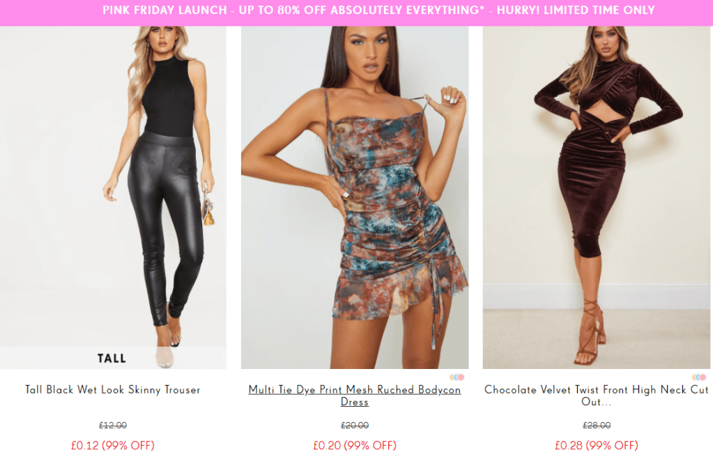 Pretty Little Thing (PLT) completely missed the point with their ‘Pink Friday’ offering. With some items reduced up to 99% off their original price, this online fashion brand demonstrated everything that’s wrong with fast fashion.